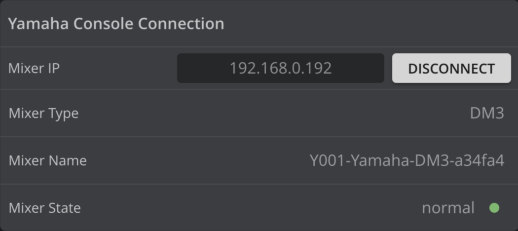You can find the External Link tab in the Settings window. The first step is to establish a connection with your Yamaha console by connecting your console in your remote network and entering the IP address for Mixer Control.