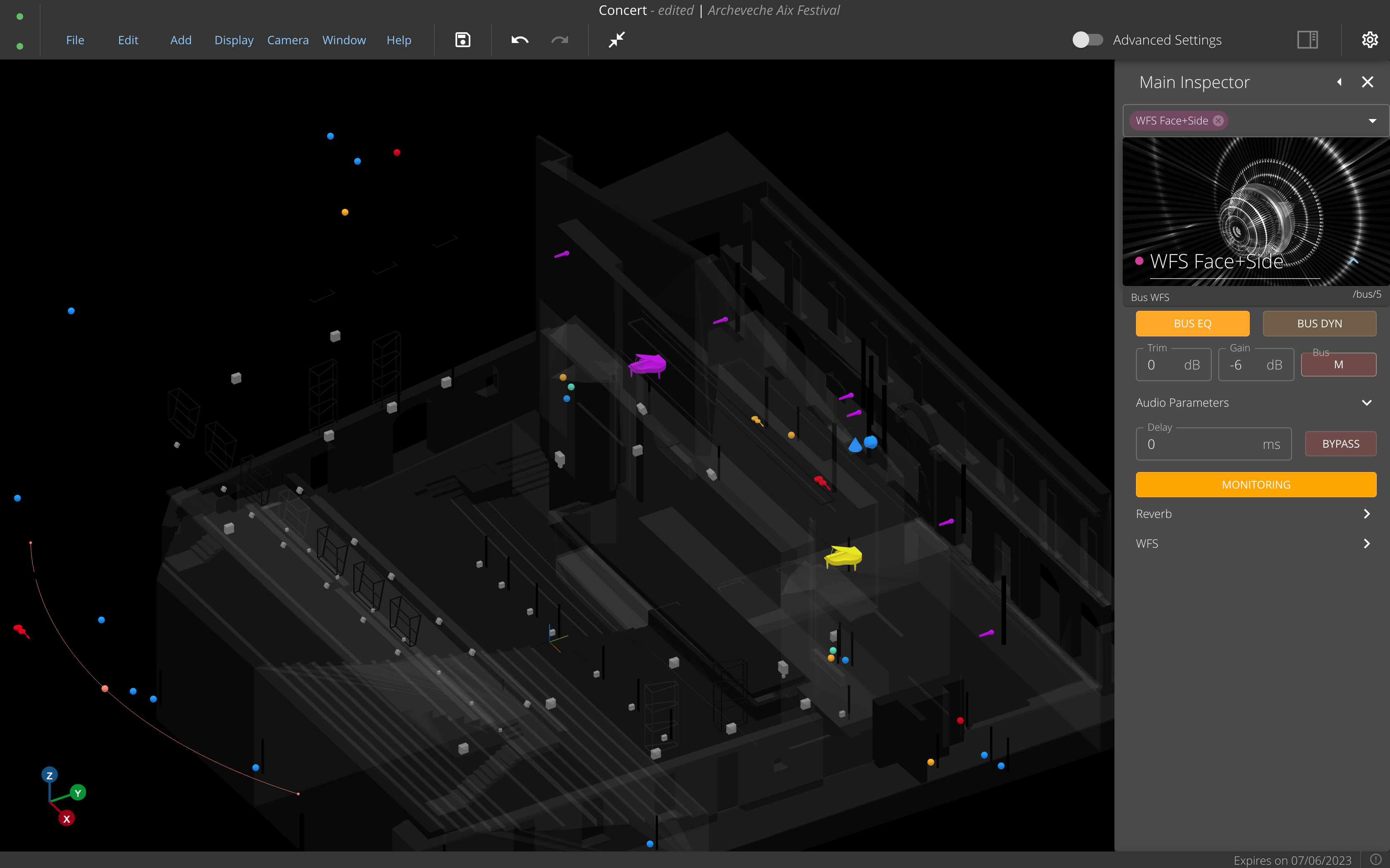 The monitoring bus offers a 3D rendering of the spatialization buses, through headphones, using the binaural algorithm.
