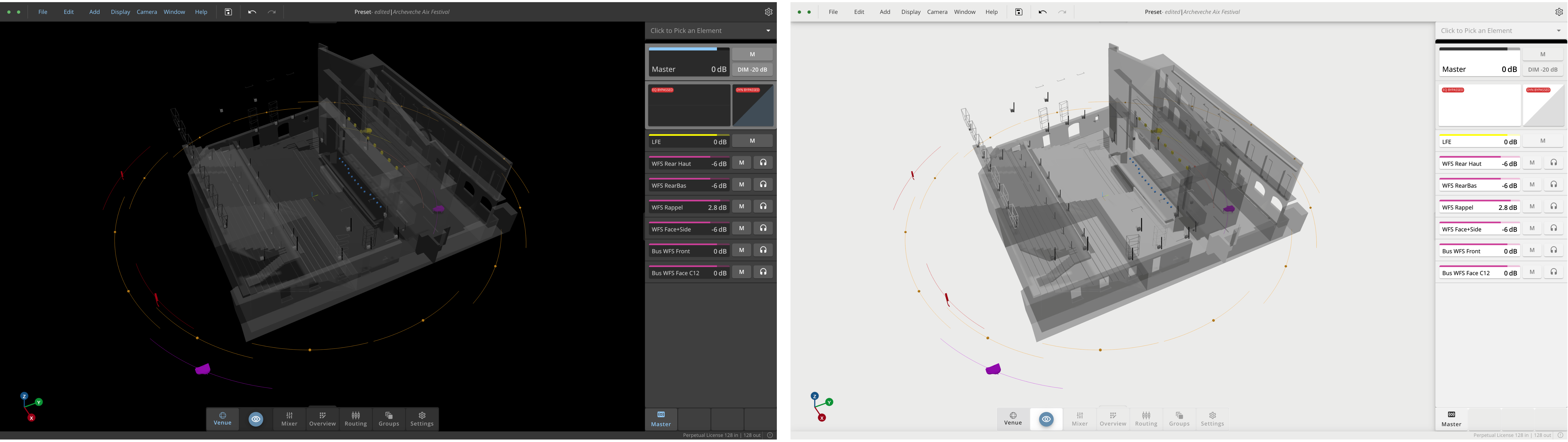 Adjust the display settings of the objects in the venue, such as the global Size, or the global Labels. For more detailed settings, you can also adjust the size of each object individually in the Inspector, via the Object Tab of your Speaker or Virtual Source.