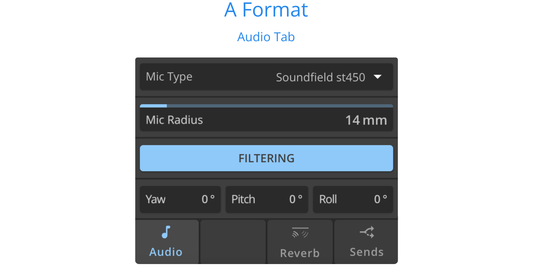 The orientation of the A-Format stream can be adjusted with Yaw, Pitch, Roll, to rotate the entire audio scene. See rotation angles.