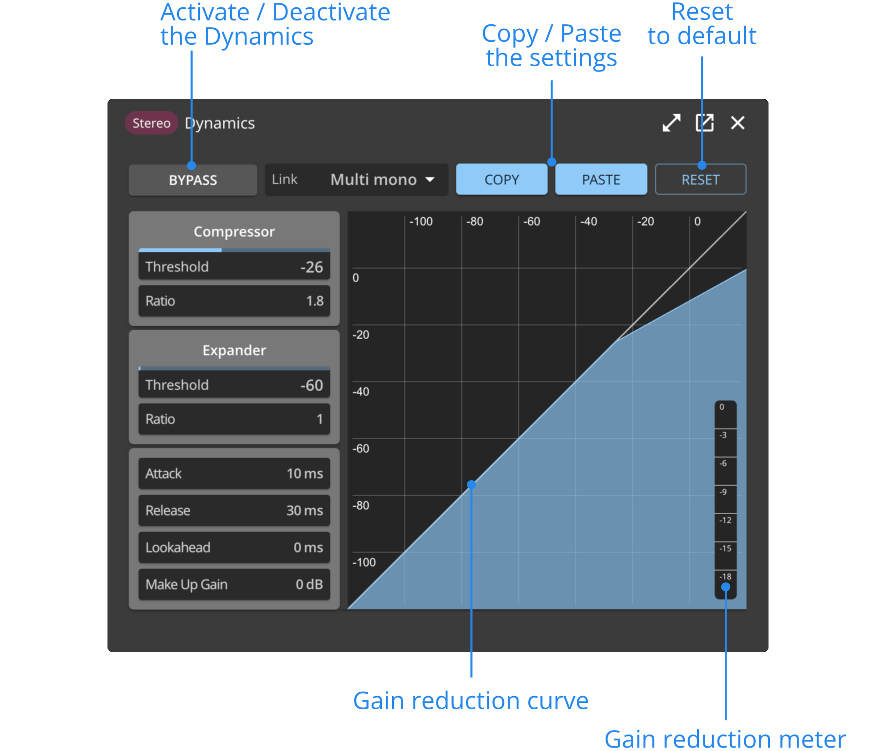 - Une option Reset pour réinitialiser les paramètres de dynamiques simultanément.